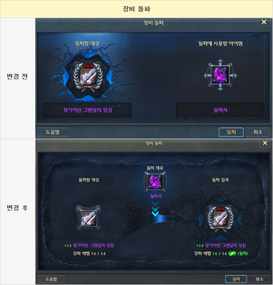 [UI] 1. 돌파 결과에 대한 확인이 용이하도록 장비 돌파 창을 개선하였습니다.