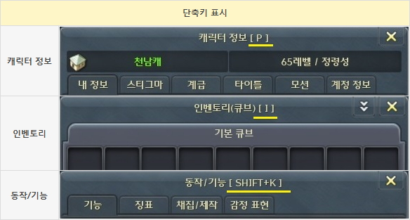 2. 창 이름 오른쪽에 설정한 단축키가 표시되도록 추가하였습니다.