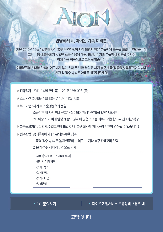 [공지] 사기 복구 소급 적용 시행 안내