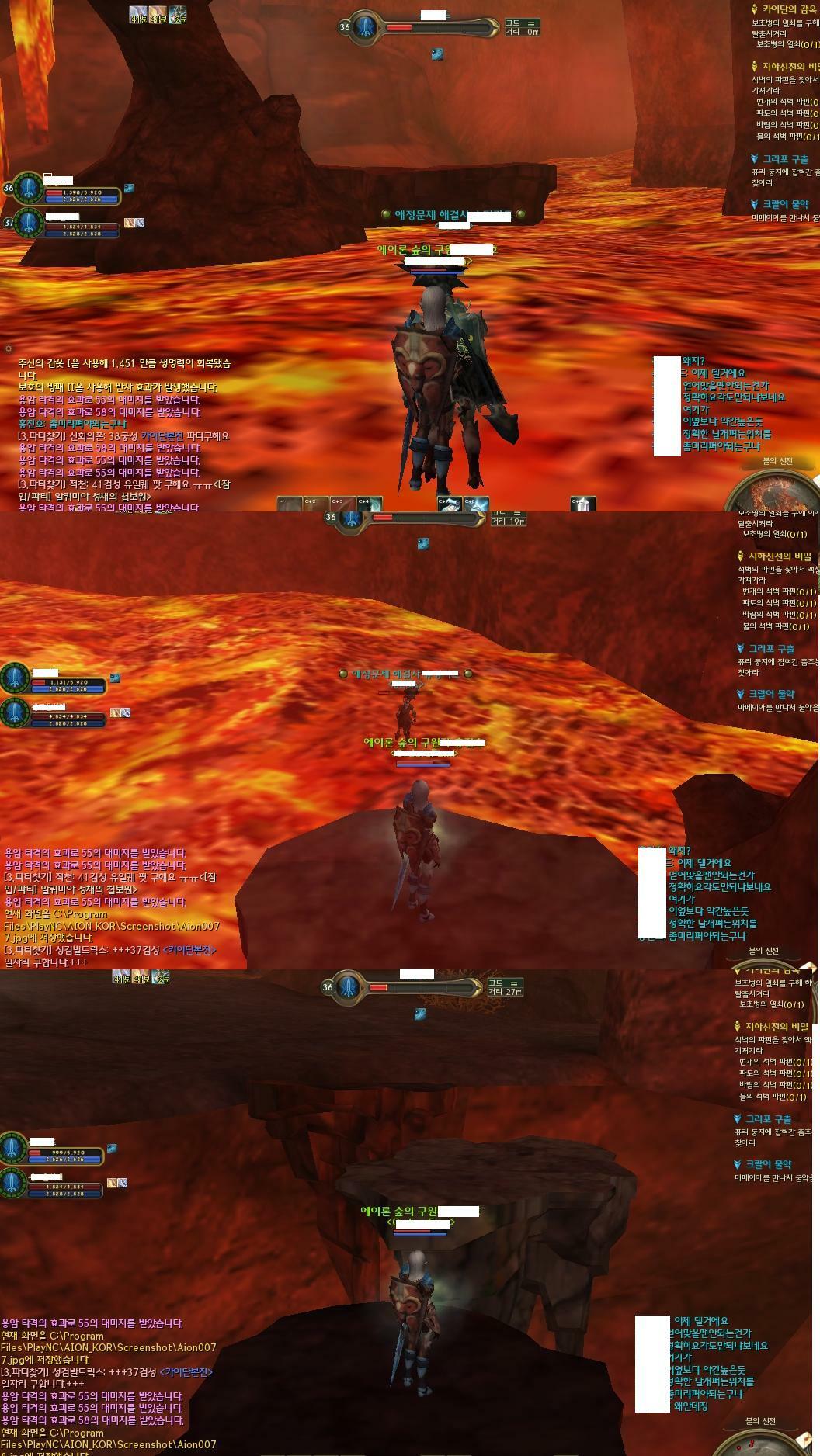 본격 불신 용암빠져나오기 공략불신을 뛰다보면 용암에 빠지는 분들이 종종있는데요. 다른곳은 몰라도 플라비가 나오는 지역의 용암에선 빠져나올 수 있습니다. 먼저 테스트를 위해 용암에서 뛰어내립니다. 용암의 중앙엔 위아래로 움직이는 엘리베이터같은 돌맹이가 있는데요. 보통점프로는 올라타지 못하고 활강을 이용해 올라타야합니다. 용암은 평지라서 활강이 불가능하지만 다행히도 3번째 스샷의 위치는 다른곳보다 약간높아 활강이 가능합니다. 마도성과 같이 체력이 낮은 직업은 빠져나오기 전에 화상데미지로 사망할수 있으므로 주의.