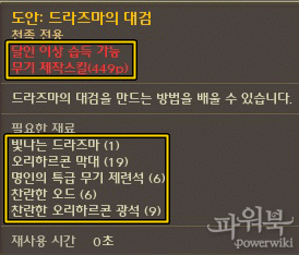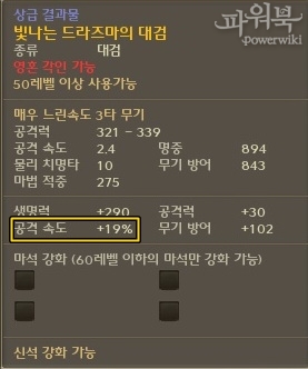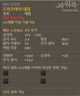 일반 결과물인 드라즈마의 대검. 공속이 없다 빛나는 드라즈마의 대검이 되면 공속이 추가!