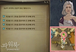 천족의 부적 퀘스트 4종류는 모두 엘리시움의 플로라에게서 받을 수 있으며, 동일한 패턴으로 진행된다.