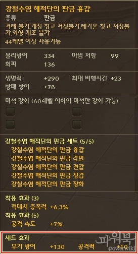 강철갈퀴 호에서 얻을 수 있는 유일급 아이템, 강철수염 해적단 세트의 능력치도 패치를 통해 변경될 것으로 보인다. (이 내용은 현재 개발중의 데이터로, 테스트 서버 및 본 서버와는 내용의 차이가 있을 수 있습니다. 주의 부탁드립니다)