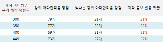 제작 숙련도와 콤보 발생률은 관계 없어요제작 시 숙련도가 높을 수록 크리가 많이 뜨나요?