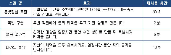 던전 내부에서만 사용할 수 있는 4종류의 스킬 아이템을 플레이 중에 습득할 수 있으며, 이를 퀵바에 올려놓고 클릭하면 강력한 효능의 스킬을 사용할 수 있게 된다. 이 아이템은 획득 후 2시간만 유지되고 그 이후엔 자동으로 사라지게 된다.