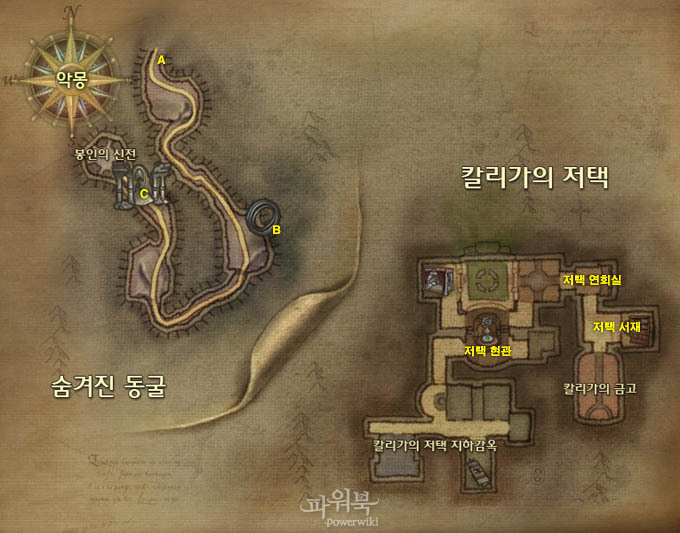 칼리가의 저택 공략은 지하감옥에서 시작된다. |