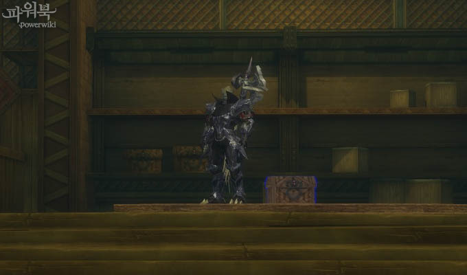 낡은 유물상자를 지키고 있는 저택 경비대장. |