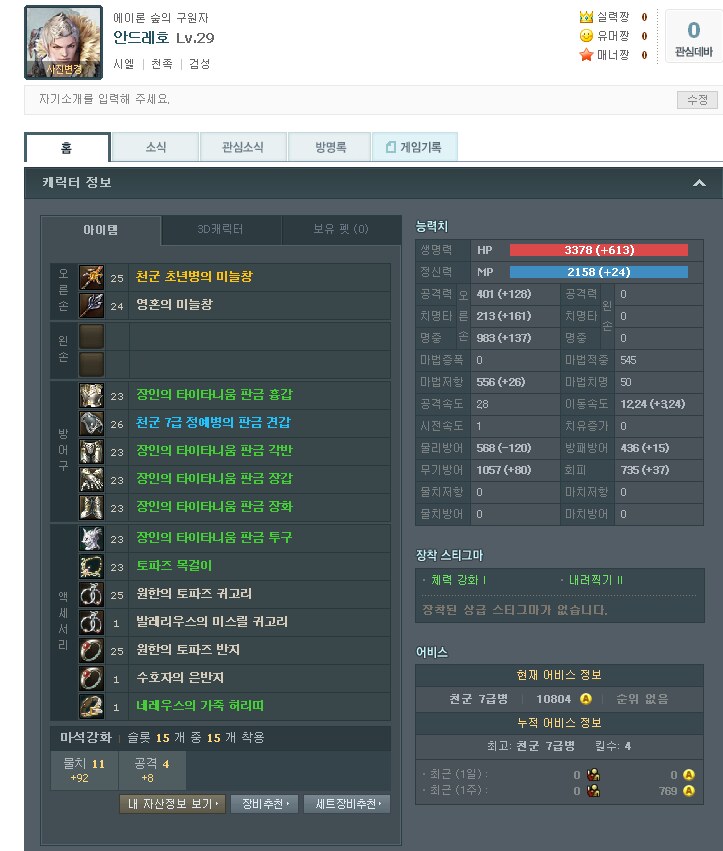 어포작하라고 29직전까지 1만포인트모아둔거뺴고 장비는 이정도밖에안되네요