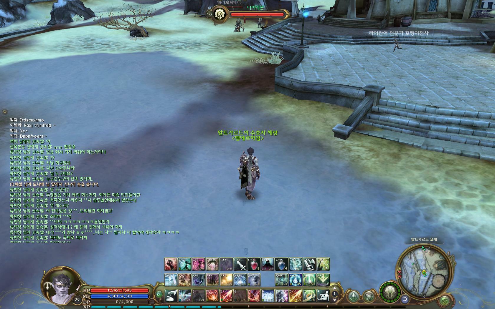 류반장 << 조심들하세요 괜한트집입니다. 원래 2장 정두 더찍어서 이 다음 스샷내용. 서로 욕하고 하는거까지 다 드릴려구햇습니다만 여기PC방이 오류가나면서 자주팅깁니다( 그래픽을 멀 업뎃해라합니다. ) 그래서 찍은한장만 올려드립니다. 그다음 스샷은 내용이라해바야 서로욕하는거뿐이없구요 애초 일어난 사건은 이렇습니다 .. 제가 어비스에서사냥을하던중 천족들에게 뒤칙을 당햇습니다. 그래서 지원 요청햇죠 /1 채팅으로요. 그런대 몇몇 분들 오시더니 *아내시더군요 허나 저는 이미 죽은 상태엿거든요 아무도 부활을안해주시구 가시더라구요..^^ 그래서 그냥 귀환탓습니다.. 문제는 거래 위탁에서 그동안먹은템들 정리하던중. 갑자기 류반장 님꼐서 귓오시더군요. 다짜고짜 같이싸워야하는거 아니냐면서 . 저보고안싸우고 사냥하고잇다고ㅡㅡ;(마을위탁인데.). (자세한건 아래 스샷 참조해주세요 ) 헌대 이상황이우낀게 제가 피한것두아닙니다 같이싸우다가 전이미 죽은상태이고. 스샷보시면아시겟지만 주위분들에게 부활요청까지하구잇엇는대 아무도 안살려주셧거든요 그래서마을로귀환한거구여. 그리고 천족들이 잇던것두아니구 이미 떠난 후엿습니다 . 헌데 저렇게 다짜고짜 귓와서 . 반말 찍직하시면서 .. 렙만 30대 후반이면 20대 후반에게 욕하구 무시해두 되는겁니까? 참. 이거원 이제 무서워서 지역채팅 도와달라고도못하겟네요에효.. 렙낮은게글케죄인가. ★★스샷잘안보이시는분들 . 그림위에 마우스 오른쪽대시구 다운로드 하셔서 보시면됩니다..