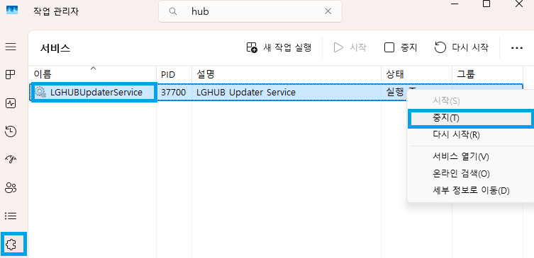 일부 마우스 제어 프로그램에 대한 실행 감지 및 차단 적용 안내 (G HUB 안내 추가)(12/09 20:30 추가) ※ Logitech G HUB 프로그램을 트레이 아이콘에서 종료해도 실행이 차단됩니다. 다소 번거롭겠지만 G HUB 사용자의 경우 작업 관리자 > 서비스 메뉴에서 lghub_updater.exe 를 완전히 중지 부탁 드립니다. 두 개의 하늘, 하나의 영광 안녕하세요, 데바 여러분 AION2입니다. 최근 매크로 기능을 활용한 비정상적인 반복 사냥을 방지하기 위해, Logitech G HUB, Razer synapse, Corsair iCUE 등 매크로 기능을 제공하는 일부 마우스 제어 프로그램에 대한 실행 감지 및 차단이 적용되었습니다. 해당 프로그램의 프로세스가 실행 중일 경우 게임 접속이 제한되며, 정상적인 플레이를 위해서는 프로그램을 종료하시거나, 작업 관리자에서 프로세스를 완전히 종료한 뒤 접속을 시도해 주시기 바랍니다. 앞으로도 모든 데바 여러분이 공정하고 안심할 수 있는 환경에서 게임을 즐기실 수 있도록 최선을 다하겠습니다. 고맙습니다.