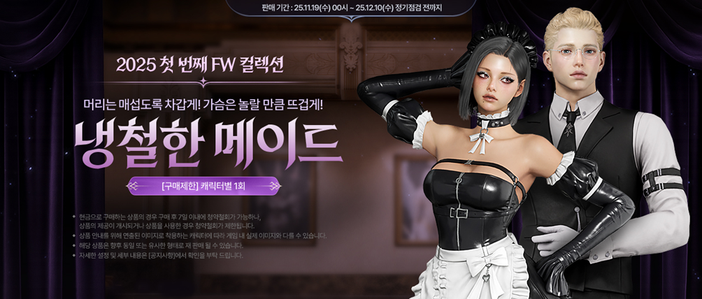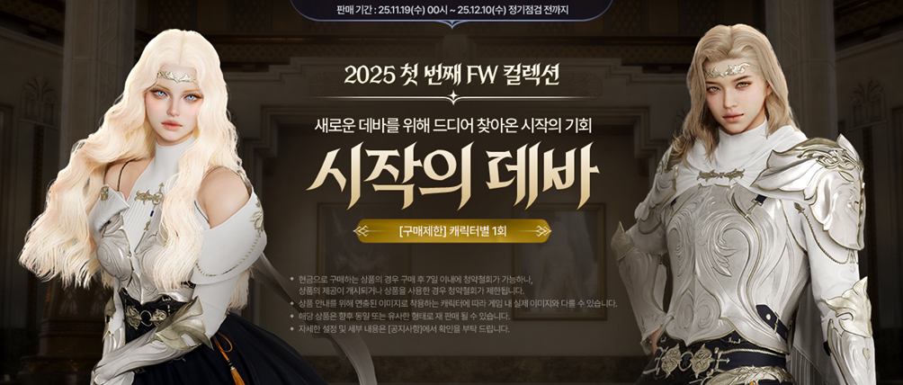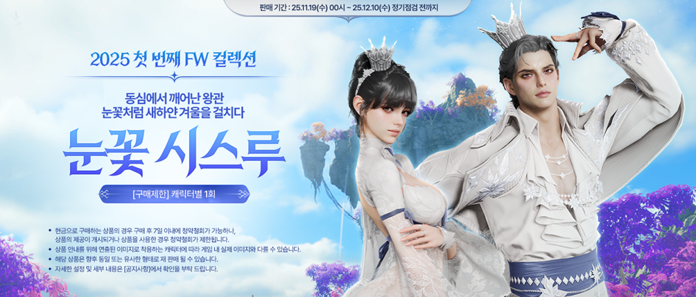■ 판매 기간: 2025년 11월 19일 (수) 00시 ~ 2025년 12월 10일 (수) 정기점검 전까지