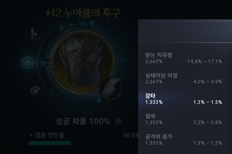 - 무기/가더 : 피해 증폭 - 투구 : 강타, 철벽, 공격력 증가, 완벽 저항 - 망토 : 강타, 완벽, 공격력 증가, 무기 피해 내성 - 하의 : 완벽, 철벽, 공격력 증가, 강타 저항 - 장갑 : 완벽, 재생, 방어력 증가, 철벽 관통 - 신발 : 완벽, 재생, 방어력 증가, 완벽 저항 - 상의 : 재생, 철벽, 방어력 증가, 강타 저항 - 견갑 : 재생, 철벽, 방어력 증가, 철벽 관통 ![]() 안녕하세요, 인벤 기자 Nirr입니다. 기사에 틀린 내용이 있거나 궁금하신 점이 있으시면 댓글 남겨주세요!