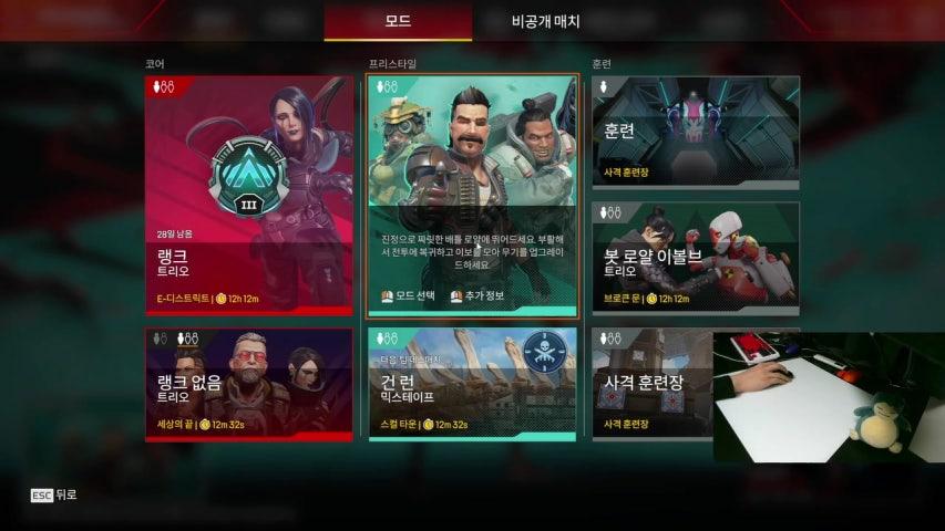 '와 잘한다 *나 잘쏘네' 싶은데다 꿀보까지 탑재한 스트리머가 있따?! 뿌빠삐숑숑숑3000망치 2개 max딜 3800, max 킬23킬 평균 딜 1500정도 넣는 레이스 유저 입니다. 손캠+꿀보까지 탑재! 오늘 새로 마이크 사서 첫 방송합니다! 구경오세요! 미친 판단력+이걸 에임으로 커버?! 뿌쓩빠쓩삐쓩 4000딜망치 오늘도 제련하러 갑니다 똥땅뚱띵띵