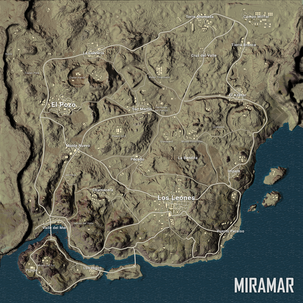 o 미라마는 배틀그라운드의 핵심적인 배틀로얄 경험을 유지하면서 에란겔과 차별화된 비쥬얼과 게임플레이를 목표로 하고 있습니다.