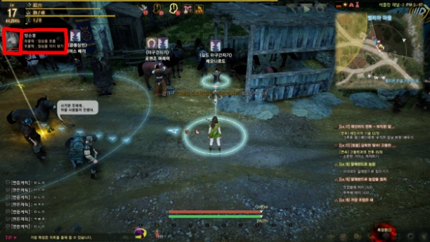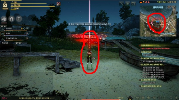핑을 찍으면 빨간 원이 나타났다가 없어지며 빛기둥이 길드원들에게 잠시 보였다가 사라집니다.