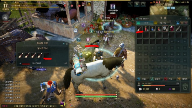 또 물고기(무역품)의 경우 가방을 한칸씩 차지하는 반면 말린 물고기(제작재료)는 여러개가 겹쳐지는 장점도 있습니다.