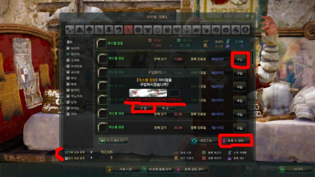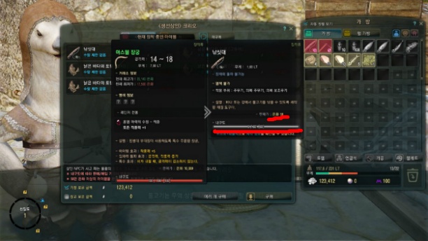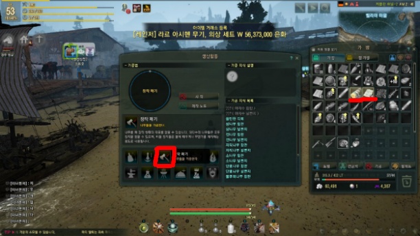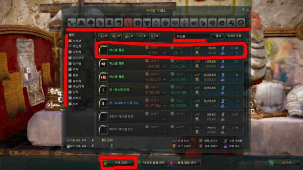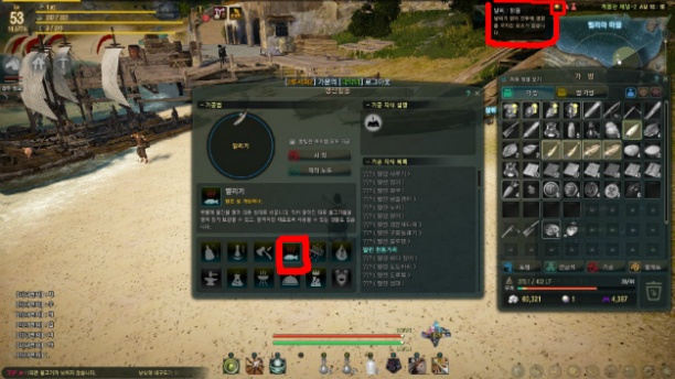 오른쪽 사각형의 길드제작은 '길드 하우스가'가 있어야만 가능한 가공법이다.