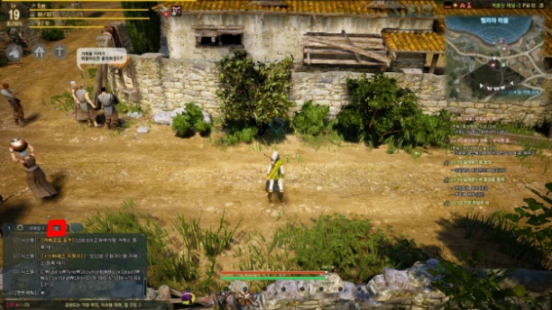 벨리아 마을에서 자동이동을 직접 해보겠습니다. 현재 위치는 벨리아 마을 창고 뒤쪽 길이며 이 곳이 시작 지점입니다.