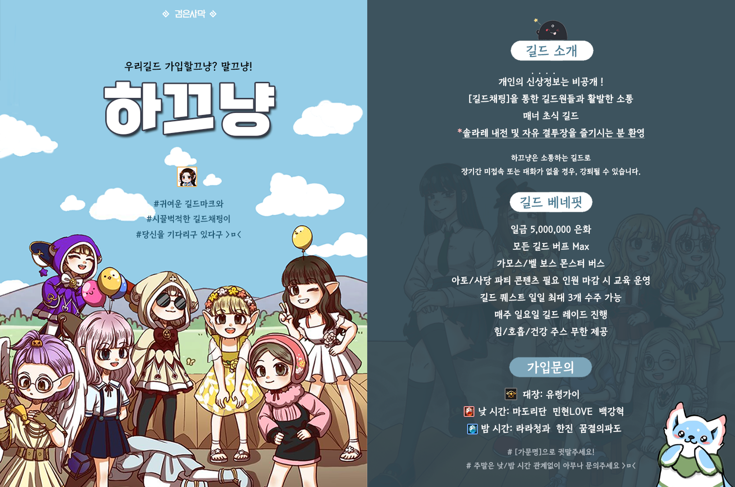 ★★[하끄냥] 매너지향 초식길드에 오세요!★★