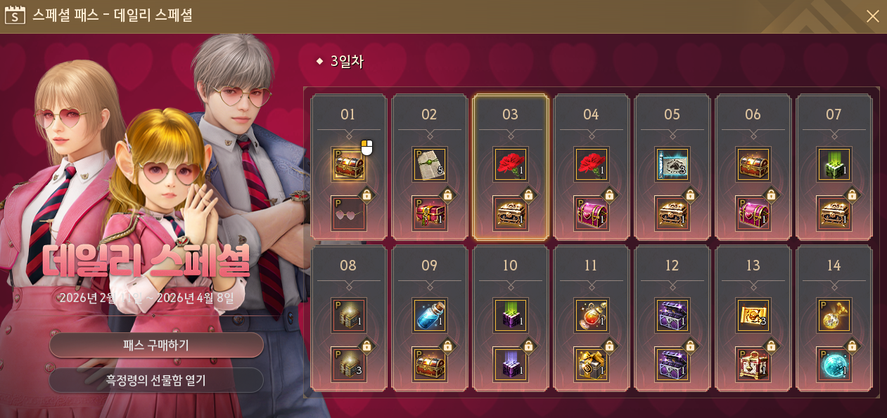 펄 상점(F3)에서 데일리 스페셜 패스를