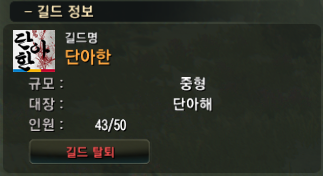 ★★공성길드<단아한>에서 50레벨 이상 유저를 찾습니다★★안녕하세요, 메디아서버 <단아한>길드입니다. ![]() 우선 감사의 인사드립니다, 이전 길드원 모집에 많은 관심덕분에 하루만에 10명 이상의 길드원을 모집할 수 있었습니다. 기존에는 가입에 제한을 두지 않았으나 현재 인원이 충분한 관계로 부대장님의 의견에 따라 조건을 변경하게 되었습니다. 이 게시글 이후 가입자는 레벨50이상만 가능하오니 참고해주시기 바랍니다. - 레벨 50이상! - 힘쎈 검은 당나귀 보유자! (무역길드퀘스트에 필요합니다.) - 접속률이 높고 길드퀘스트에 참가 가능하신분! 이번에도 많은 관심 부탁드립니다. 감사합니다. 가입을 하지 않으셔도 간단한 상담은 받고 있습니다. 언제든지 귓해주세요. 서무담당 : 92장민혁 부대장 : 91조희진 대장 : 단a한 만약 미접속시 귓속말을 받지 않는 경우 서무담당에게 친구추가를 걸어주시면 접속시 확인하여 먼저 귓말드리겠습니다. --------------------------------------------------------- 당부드립니다! 확인된 사실 이외에는 비방 및 욕설은 삼가부탁드립니다. 현재 확인되지않은 비방 및 욕설이 많습니다. 이는 타길드에서 견제하는것으로 생각중에 있습니다. 다른의미에서는 감사하다고 생각하나, 이는 대외적으로 봤을때 길드 이미지에 손상을 주는것으로 저희는 타길드에서 행하는 이러한 유언비어를 그냥 넘길 생각은 없습니다, 끝까지 확인하여 밝혀내겠습니다, 그러므로 이전 글은 삭제하지 않겠습니다. 그리고 약속드립니다. <단아한>길드외에서 분쟁의 소지가 있는 경우, 확인 후 옳고 그름을 판단하여 경고조치 또는 제재를 하겠습니다. |