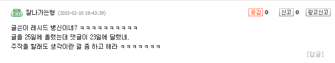 글을 25일에 썼는데 23일에 댓글이 어떻게 달리냐고 주작이래서 원본을 다시 찾음