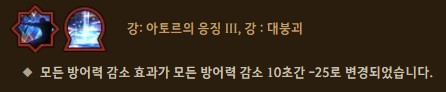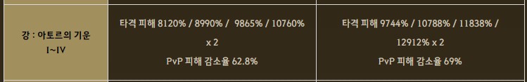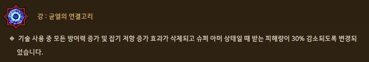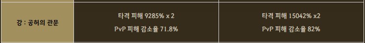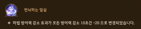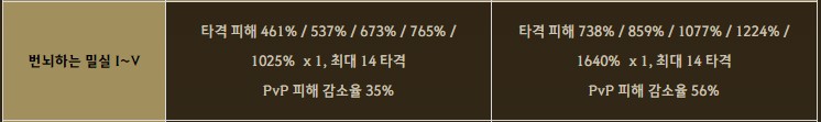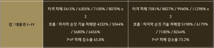 응징과 대붕괴의 모든 방어력 감소 20->25로 상향 도장 15352%->21646%로 6294% 상향 대붕괴 16140%->22596%로 6456% 상향 대붕괴 흐름: 마지막 손짓 6456%->8264%로 1808% 상향 2) 번뇌하는 밀실