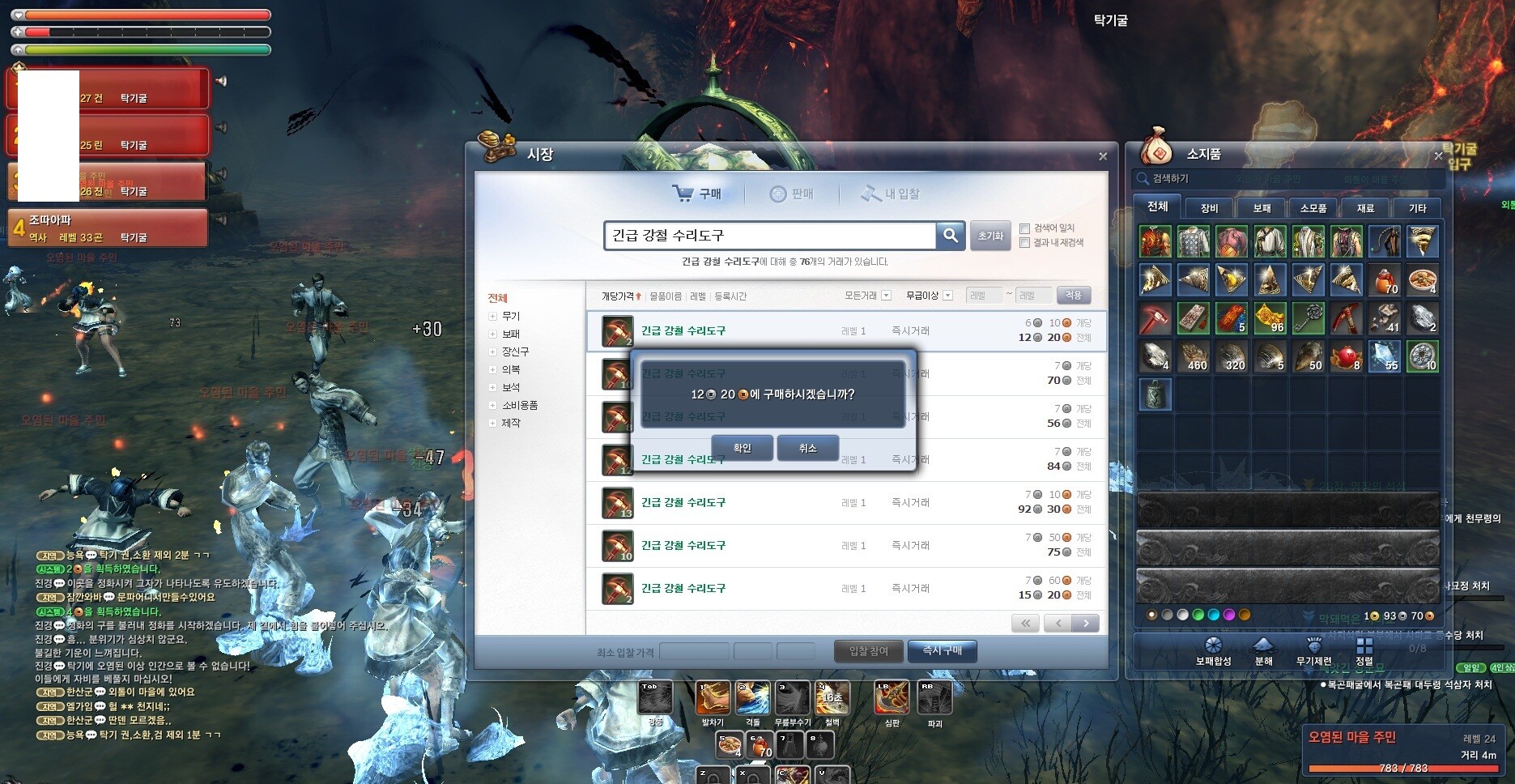뿐만아니라, 물약과 음식도 경매장에서 사서 써야합니다. 레벨별로 불필요한 구간이 있기도 하지만..