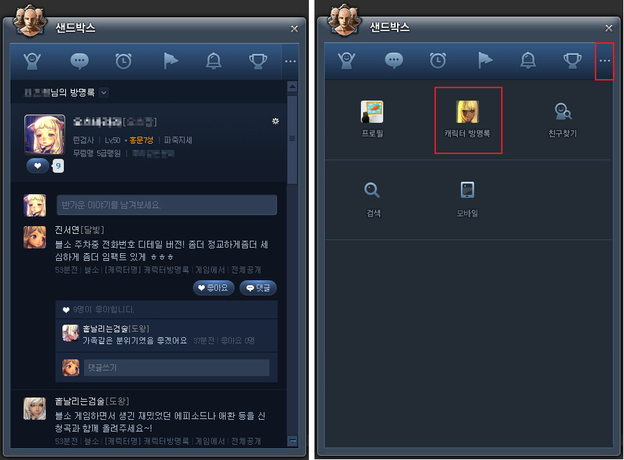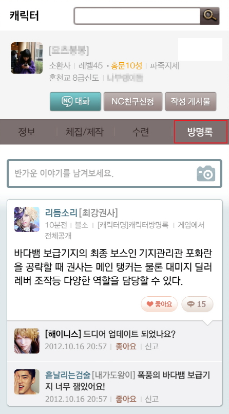캐릭터 방명록 서비스 오픈 안내블레이드 & 소울 가족 여러분, 안녕하세요. 블소 캐릭터 홈에 방명록 서비스가 새롭게 선보이게 되어 아래와 같이 안내 드립니다.