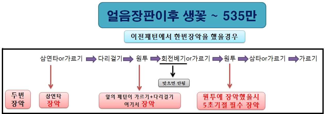 즉, 생꽃이나 장판전에 2번까지 썼다면 생꽃이나 장판 후 일반패턴은 3번부터 나온다는 말이죠.