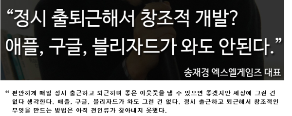 진짜 서는데가 바뀌면 풍경도 달라지는구나.....![]() http://chinesecomic.egloos.com/5787443 요약:송재경왈 야근은 당연한거고 야근수당도 안주겠다. 송재경은 1세대 프로그래머인데다가 바람의 나라와 리니지 만들고는 정작 각회사 사장들이랑 마찰을 일으켜서 돈 못벌고 퇴사한 사람임.이런 사람이라서 회사 상부층의 저열한 마인드와 실제 개발자의 고충을 잘 알고 있는 사람 이라고 생각했는데 사장되니깐 우디르급 태세전환 ㅋㅋㅋㅋㅋㅋㅋㅋ 진짜 서는데가 바뀌면 풍경도 달라지는구나.