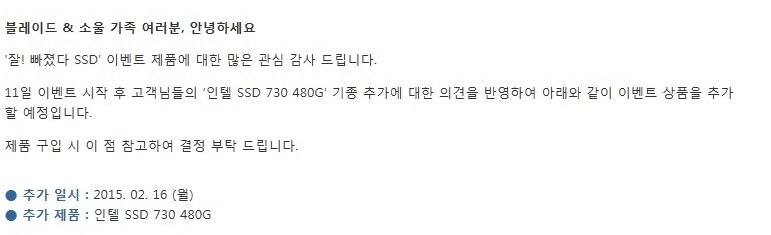 SSD 인텔730 480g 추가 [의상쿠폰 패키지]http://bns.plaync.com/news/notice/article/3622