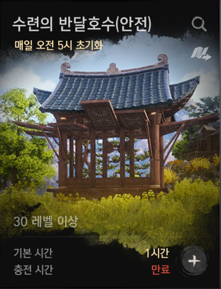 ‘수련의 폐허(안전)’, ‘황금의 숲길(안전)’ 던전이 ‘수련의 반달호수(안전)’으로 통합되었습니다.
