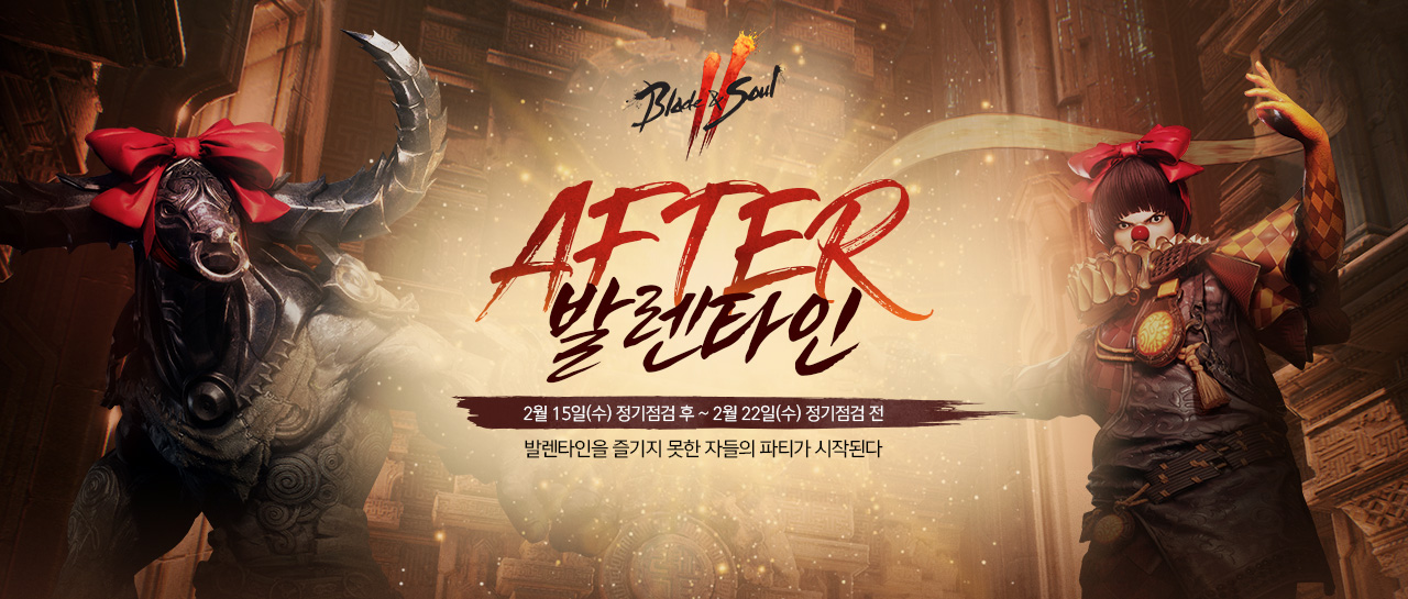 AFTER 발렌타인액션 MMO의 시작, 블레이드 & 소울 2 안녕하세요. 블레이드 & 소울 2 입니다. 지나간 발렌타인을 아쉬워하는 신규 4인 파티 던전 보스들과 함께 AFTER 발렌타인 이벤트를 준비했습니다. 이벤트 기간동안 파티 던전을 클리어하고 운명의 별빛 상자를 획득하세요. ■ 이벤트 일정 2023년 2월 15일(수) 정기점검 후 ~ 2023년 2월 22일(수) 정기점검 전 AFTER 발렌타인 이벤트 ■ 이벤트 내용 2월 15일(수) 신규 4인 파티 던전 ‘나선의 미궁’이 업데이트 되면서 단 하루 차이로 발렌타인 데이를 즐기지 못해 아쉬워하는 보스 ‘미노우’와 ‘배이도’가 발렌타인 액세서리를 착용하고 나선의 미궁에 등장합니다.