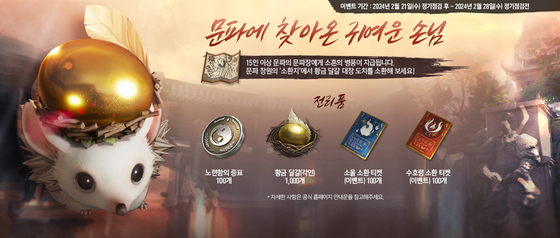 정기점검 이후 업데이트 되는 이벤트 및 프로모션을 소개합니다. [이벤트] 문파에 찾아온 귀여운 손님