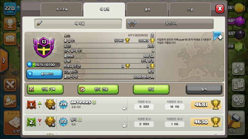 13렙 보스 클랜원 모집합니다![]() ![]() 클랜이름 : 보스 @성인 클랜입니다@ 클랜 Lv : 13 레 벨 대표 : 일좀하자 (태그 #2L9L8OROY) 클랜 게임 항시 만점 올립니다 !!클랜전에 열의와 성의가 투철하신 유저 환영합니다!! 1. 11홀 중후반부터 12홀 풀방까지 모집합니다(로우 환영) 2. 가입할실때 카톡대화 후에 가입받겠습니다 (기본 문구 가입은 거절) 3. 일반파밍 원하시는 유닛 모두 지원해드립니다. 4. 클랜전 참여전에 항시 내프로필 불참 참여 채크부탁드려요. 5 .클전항상돌아갑니다 6. 클랜전 참여시 두번 공격중 한번은 잔별or 완파가능한곳 정리부탁드립니다 7. 오바홀 철새 비매너는 영원히 사절하겠습니다. 8. 소수 클랜원분 합병합니다 단 흡수 합병 원합니다 . 9. 가족같은 분위기로 함께하겠습니다. 밴드운영중 밴드명 : 보스클랜 오픈 카톡방 운영중 카톡문의:qudr1