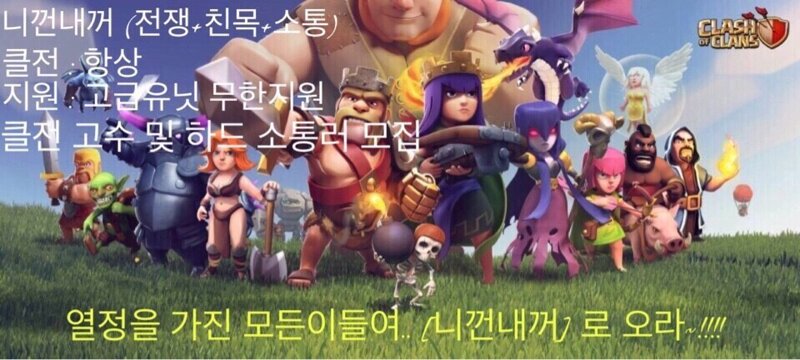 [LV.20][니껀내꺼][클랜게임 이미완료] 쉴세없는 50인전을 즐기실 11홀이상 중고수!! 딱 2자리 가능합니다!!![]() ![]() ![]() ![]() **[니껀내꺼] 클랜은 국내 클랜중 12번째 20렙을 달성한 클랜 입니다!! **유령클원 없는 50인전을 즐기는 클랜입니다!! **11홀 영웅합 100렙이상 (독타보유 유저만!!) **클랜게임은 무조건 최고보상 받습니다!! **실력보다는 소통을 최우선으로 강조하는 클랜입니다!! (소통이 안되면, 언제든지 “추방” 가능합니다!!) 1. 클랜명: 니껀내꺼 2. 클랜대표: 나불마르스 3. 클랜레벨: 20 4. 클랜태그: #8209089R 5. 클랜인원: 49명 (딱!! 2자리까지 가능!! 카톡주세요!!) (카톡으로 연락주시기 바랍니다!!) 6. 전쟁빈도: 매일 7. 가입조건: 20대이상 11홀 성인남녀//개념&소통&활발하신분들 모집해요!! (가입후, 대화 없으실분들은 오지마세요!!!! 절대사양해요!!!!) (지원 요청만 하고, 대꾸 없는분들도 시즌중 "추방" 가능!!!!) 11홀-영웅합 100렙이상 (독타보유 유저만!!) (동홀 2별 및 높은 확률의 10.5홀이하 완파 가능 유저) (부캐도 영웅합 100렙이상 독타가 있어야만 받습니다!!) 8. 하고싶은말: 소통 잘 되시는분들은 오시면 금방 적응하실거라고 봅니다. 가입후, 많은 소통 바랍니다!! 소통은 필수입니다!! 가입만 하고, 소통 안 되시는분은 “추방” 가능합니다!! 참고로, 시즌중 유령 클원 정리도 하지만, 시즌 종료후, 유령 클원 정리합니다!! (불참유저 거의 없음!!!) **본캐를 타 클랜에 두고, 부캐를 가입하시려는분은 절대 오지 마십시요!! 철새 및 간보기유저들 절대 사양합니다!! **한국 클랜과의 클전중일때는 가입요청이 거절 될수 있으니, 거절 당하셨거나, 인원이 꽉 차 있을때는 카톡으로 연락주세요!! 카톡ID : tiger0405 **밴드가입 필수!! 클랜 가입과 동시에 밴드 가입 하셔야 합니다. 그 후, 밴드내 닉네임 변경 필수구요. 공지사항 다시 한번 숙지 하시기 바랍니다. (클랜룰 바로 적용!!!!) **클전룰** 가장 중요한 내용이니, 밴드 가입후 공지 정독하세요!! **가입문구** 기본 문구는 절대 사양입니다!! (카페&헝앱&인벤) 홍보글 보고 왔다고 하셔야 됩니다!!