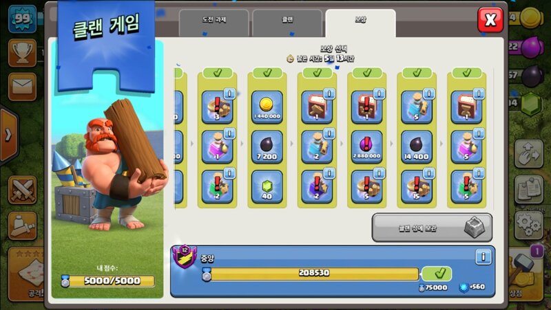 ★☆★ 클랜게임 20만8530점 달성!!클랜명 : 중앙
