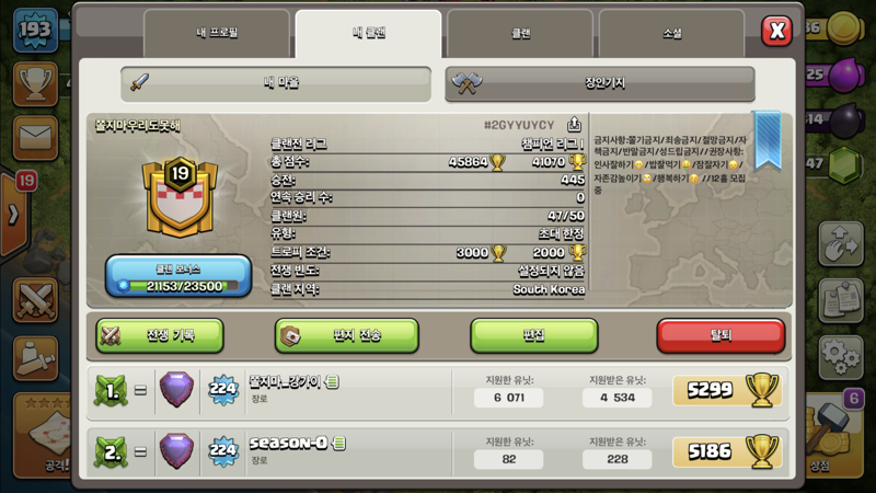 쫄지마우리도못해 12홀 신입 모십니다.![]() ========= 모집 상세 요강 ========= 클랜명 : 쫄지마우리도못해 클랜모토 : 게임은 스트레스 풀려고 하는 매개체! 목적전도현상 일으키지맙시다.과하지않게 스트레스 받지말고 즐겜합시다~ 클랜레벨 : 19레벨 규모 : 40 이상 대규모(클랜전 40인전 진행중) 전적 : 스샷참조 (승률 약 85%) 클전시간대 : 일화목 주3회 진행중(오후시간대 서칭) 클전룰 : 영웅업글중 참전가능(단,빡클전시엔 즉완가는하신분) 모집기간 : ~ 2019 2월 28일 모집대상 : 12홀 ○명 지원자격 : 만 20세이상 50세미만 성인. 우대사항 : 3별 설계 가능하신분,가입요청문구참신한분,실력과 인성의 균형이 조화로우신분! 결격사항 : 프로필내 매우적은 클전별획득수,비정상적인 지원량, 기본가입문구, 미성년자, 시뮬클가입이력자 가입시 간단히 테스트가 진행될 수 있으니 준비해주시기 바랍니다. 저희 쫄못에 관심 갖어주셔서 감사드려요^^ 최근 완파영상 유툽 : https://youtu.be/N_3nbHu-d0c 가입문의:카카오톡 gmt0019(오전08시~오후11시59분까지만 가능합니다) ![]() ![]()