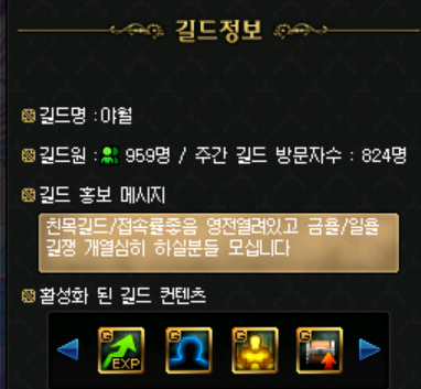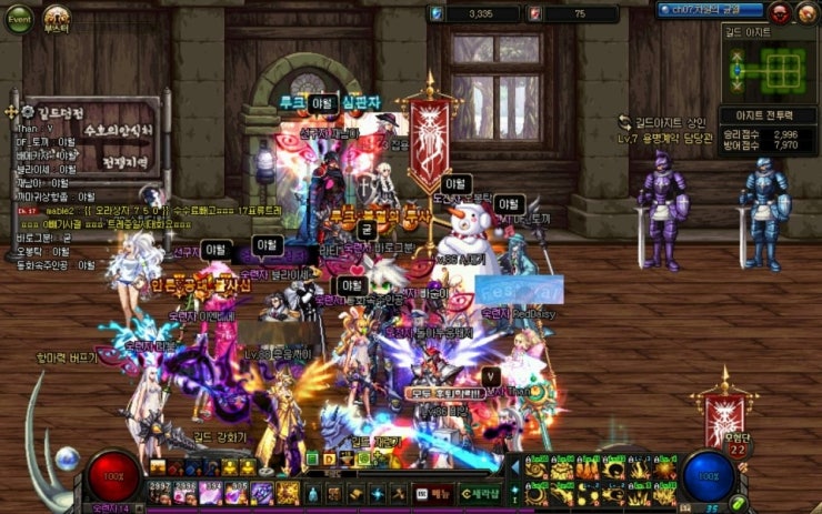 카인 <야월> 길드에서 신입길드원분들 모집합니다 던린이/던저씨/던창/던잘알/던알못/프로헬창러/광부/남캐/여캐/지약캐/지강캐/그직업/우럭따/지갑전사/미성년자/성인 다 가능합니다야월길드 1. 현재인원은 (930/1000)정도에 주말평균 출석자수 600명의 작지않은 길드입니다. 2. 만렙길드라 버프/텔포/육성경험치 등등 모든 혜택 다 누리실수 있습니다. (조용히 게임만 하셔도 문제되는 점은 1도 없습죠) 3. 길드전쟁 / 길드던전 현재 (2017 5/28 기준) 50위권의 길드랭킹이며 길드던전부문은 타에 추정을 불허할정도의 정화율 100프로를 유지중이며 항시 길드전쟁 및 길던 유저를 계속 모집합니다. (길드던전 도는 분들도 다수) 길드전쟁은 금/일 8시(20시) - 쭉 인원수만 맞으면 몇시까지고 할수 있습니다.(참석률 좋습니다) 4. 레이드 1.안톤공격대는 아시다싶이 던파 내에서도 16인 구인이 쉬워 길드내 공격대는 고정으로 파져있진 않지만 길드분들께서 자주자주 파시니 걱정부분없고 안톤쩔공같은 경우는 많은 길드원이 쩔공을 파니 모르는 쩔공보단 아주 크린하고 값싸게 쩔을 받으실 수 있습니다. 잘 모르시는 초보자나 그런분들도 서슴없이 길드 방문해주시고 물어보셔도 성심성의껏 아는것 다 알려드립니다. * 이런분들 죄송합니다. - 나이제한은 없으나 정신적으로 어리신분 - 무리한 요구 및 부탁 + 구걸 (쩔해주세요. 이거해주세요. 돈좀주세요. 등) - 욕설, 인격모독 등 상대방에게 피해를 주는 유저 - 사기/비매너로 인한 길드이미지 실추 - 과도한 자랑 유저 (영곶인 부위 놀리기, 본인이 원치않는 템 지적 등) / 무분별한 에픽자랑은 던린이들에겐 자괴감만 듭니다. - 저희길드는 자체적으로 안톤,절탑,비탑항아리와 항아리에서 나오는 아이템을 제외한 모든 아이템링크를 금지로 하기로했습니다. ※ 기존 유저분들의 편리한 부캐육성 및 신입 유저분들을 위해 장기간 미접속 아이디는 정리합니다 정리되어도 복귀하시면 언제든 재가입 가능합니다. 신청방법은 던파 게임 내에서 ' ; ' 누르시고 길드검색에 ' 야월 ' 검색하시고 신청 누르시면 됩니다. 카톡 ( howon31 / tapgay ) 로 문의주세요 문의주실때 던파길드 가입문의라 하시면 친절하게 설명해드립니다 (마지막은 늦은시간까지 계시는분들 단체사진 뙇!) 날이 좋아서 길드가 좋아서 야월이 흥하기를