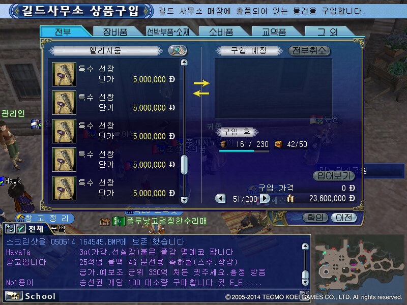 대개프 대스퀘어 대라틴 제독실 특수선창 금고 오물방지도장 - 500 사령탑 수리도구셋트 - 400