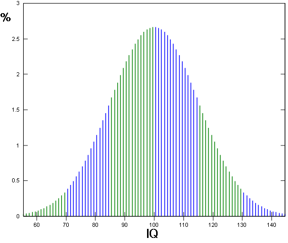 아래 ZaKu님 글 눌렀다가아래 ZaKu님 글 눌렀다가 길드 가입 조건에 IQ100 이상이 있는거 보고 호기심이 생겨서 위키에 IQ분포도를 찾아보니.... IQ100안되는 사람이 굉장히 많군요... ![]() 전문 내용찾아보니 85~115까지는 평범한 사람이고 116이상은 상위 16.8% 126이상은 상위 4%라는데 수능등급으로 치면 116이상되야 3등급 126이상되야 1등급이네요 ㅋㅋㅋㅋㅋㅋㅋㅋ 대박........ 근데 놀라운 사실은 저 표가 사실이라면 2명중 1명은 IQ가 100안된다는 말인데.....