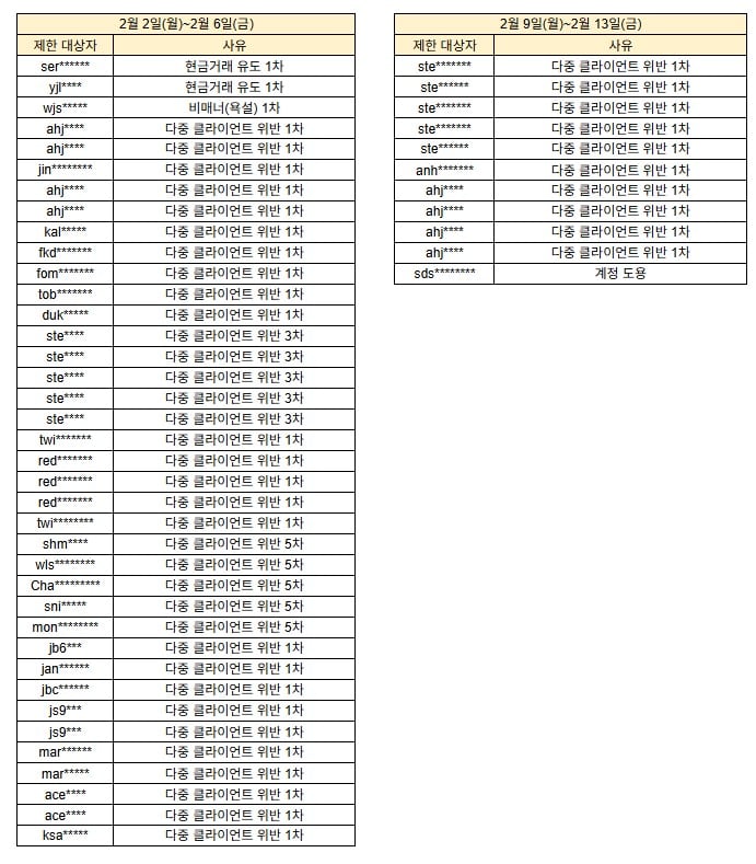 2월 운영 정책 위반 목록 안내(2주차)![]() 안녕하세요 제독님 ![]()