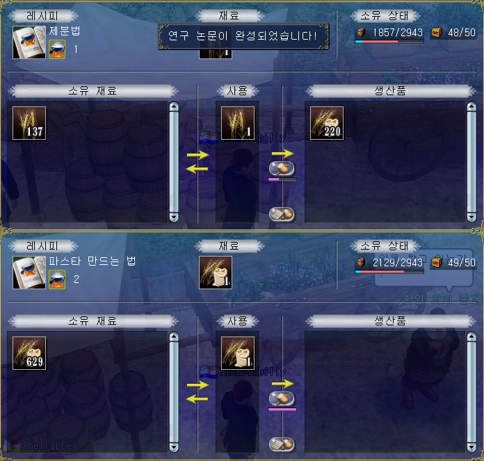 맨땅 헤딩, 투클로 시작한 육성일지 (10)이번 편은 [30] 보스턴 학술협회 [31] 남만 무역 - 일본 [32] 배 강화 - 롱스, 바운티 입니다. 실제로 플레이한 내용을 토대로 쓰다보니 이번 편은 텀이 조금 길었습니다. 양해 바랍니다. [30] 보스턴 학술협회 보스턴 학술협회는 옥스포드 대학의 업그레이드 버전이라고 보시면 되겠습니다. 특징이라면 직업에 따라 연구가 가능하고, 그 직업일 때만 혜택을 준다는 것입니다. ![]() 예를 들어서 상인교관 학술협회 스킬인 [상인 교관의 지혜 1]을 장착하고, 다른 직업으로 전직하면 상인교관 학술협회 스킬이 비활성화됩니다. 다시 상인교관으로 전직을 하면 활성화됩니다. 또한, 학술협회와 대학은 [보유 학점]만 공유를 하고 나머지는 전부 별개라고 생각하시면 편합니다. (연구 횟수, 누적 학점에 따른 스킬 개방 등) 직업에 따른 혜택을 주는데 방적상, 용병, 발굴가 등 전직증 1장으로 돌려쓰는 초급 직업은 제외됩니다. (낚시꾼은 예외) 1) 조리사 - 연구횟수 작업 대학과 마찬가지로 학술협회 연구 개방을 위해선 ① 스킬 레벨(순수랭) ② 누적 연구 횟수 두 가지 조건이 필요합니다. 먼저 누적 연구 횟수를 쉽게 채우기 위해 [조리사]로 전직을 해봅시다. 조리사 전직퀘 - 병사의 식량 조달 (https://www.ssjoy.org/dho/quest/16164) ![]() 대구를 와인으로 찐 요리 200개가 필요한데, 런던 주점의 판매원이 팔고 있으니 크로스 월드를 활용해서 빠르게 모아줍니다. ![]() 2캐릭 분량이 필요하니 400개 챙겨주세요. 퀘 완료하셨다면 대도시로 돌아와서 바로 전직을 해주시고요. 행음도 충분히 많이 챙겨주세요. 그 다음 필요한 레시피가 2개인데 ① 누가해도 간단한 레시피 (사그레스, 보르도, 팔마 도구점) ② 파스타의 기본 (베네치아 도구점) 이렇게 2개를 챙겨주세요. 2개씩 사서 캐릭마다 갖고 계시면 좋습니다. 이제 보스턴으로 가서 프랭클린에게 말을 걸어 학술협회 [조리사의 연구 1]을 받아줍니다. ![]() 필요 조건이 조리 3랭인데, 예전에 대학 처음 갔을 때 닭-달걀 하시며 달성하셨을겁니다. 3랭이 안 된다면 밀가루->밀->파스타 하시면서 3랭까지만 만들어주세요. ※ 제분법(밀->밀가루), 파스타 만드는 법(밀가루->파스타) 이렇게 2가지 레시피는 마이레시피에 등록해놓으면 편합니다. 마이레시피에 등록하면 행동력을 1 줄여주기 때문입니다. ![]() 자국 왕궁의 서기관에게 국공증 30장을 주면 마이레시피 개방을 해줍니다. 개방 후에 레시피 제본을 의뢰하면 책이 사라지면서 레시피가 마이레시피로 등록 됩니다. 2가지 책 모두 구하기 어렵지 않고, 우리는 엄청나게 많은 양을 만들어야 하므로 2개 모두 마이레시피로 등록해주세요! ![]() 아이템 창 우측 상단에 마이레시피 버튼이 있습니다. 마이레시피 단축키는 컨트롤+B 입니다. ※ 기본으로 3개까지 마이 레시피 등록 가능하고 국공증 40장 주면 확장해서 4개, 50장 주면 5개 이런식으로 늘릴 수 있습니다. ![]() 그 다음 본격 연구작업을 위해 ① 대감사제 기간이라면 샌프란시스코로 ② 아니라면 튀니스, 샌프란시스코 중 연구보고 우대인 곳에서 이도 저도 아니고 귀찮다 하시는 분들은 그냥 세비야에서 하셔도 됩니다. 요점은 밀이 나오는 항구에 상인 의뢰 중개인이 있다면 가능합니다. 학술협회 연구는 학자가 아닌 의뢰 중개인에게 받으니까요. ![]() ![]() 그럼 준비한 레시피로 [밀->밀가루->파스타] 이렇게 2단계 가공을 해줍니다. [조리사의 연구 1]은 조리 대성공을 100번하면 완료됩니다. 대학스킬 대성공 확률 증가 3,4 껴주시고 하면 대략 230번 생산에 연구가 완료됩니다. 보고시 획득 학점은 250점이며, 대감사제+명예시장 효과까지 받으면 70% 증가해서 425만큼 받습니다. (웨스트 코스트 철도 투자효과가 경치는 100% 증가인데 학점은 50% 증가인 것 같네요. ) Q) 몇번 하면 되나여? A) 지겨워서 못해먹겠다 싶을 때까지 하시면 됩니다. 참고로 각종 교관 40회, 교역상인(식료품 방어) 30회, 향료상인(향신료 방어) 35회, 공예사, 재봉사, 대장공(소비재료 절감) 55회, 모든 직업 다 오픈하려면 65회입니다. 저는 일단 세비야에서 40회 정도 하고, 대감사제 기간에 샌프에서 학점작 겸해서 20회 이상 했습니다. 학술협회 스킬 중에 눈여겨 볼 것이 재해 방어인데 특히 식료품의 경우는 쥐와 화재 양 쪽 모두에 노출되는 교역품이라 다른 품목보다 재해에 더 취약한 면이 있습니다. 더군다나 남만무역 할 때 고구마, 감자 운반이나 남만 도래 양주밤이 뜨면 양주밤 운반 등 식료품을 귀하게 다뤄줘야 할 경우가 앞으로 많이 있을겁니다. [교역상인의 지혜 1]이 있다면 굉장히 요긴하겠군요. ![]() 그리고 육메 자주 퍼오시는 분들은 [향료상인의 지혜 1] 끼시면 육메만 가득 싣고 무보급으로 오시면 됩니다. 또 한 가지 주목해야 할 것이 공예사, 대장공, 재봉사, 파티쉐의 소비재료 10% 절감입니다. 10% 절감이라고 나와있는데, 들어가는 재료가 2개일 경우 1개로 줄여줍니다. 국재질 만들 때 재료비를 수천만 두캇 줄여주고 (티크재질1 + 특수 선박용 도료 2 + 전용함 건조증 3 -> 티크재질1 + 특수 선박용 도료 1 + 전용함 건조증 2) 벨벳 온라인 할 때도 생사가 3개에서 2개로 줄어드니 수익