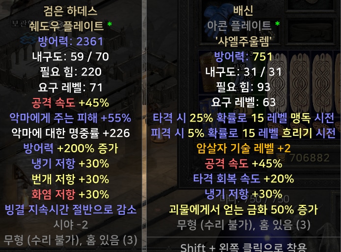 3. 갑옷은 배신(트랫셔리)를 사용하거나 검은 하데스 갑옷을 사용합니다.