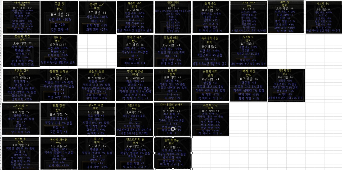 기타 35. 20민첩 레이븐링 ((완료)) 36. 왜성반지2개 37. 매직링 15올레+40피