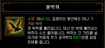 [거대박쥐]스킬이 뜰 수 도 있어요.![]() 마나 첫소비 150, 집중시 75가 되죠. 거대박쥐는 써보셔서 아시겠지만, 사거리가 길고 범위 공격이에요. 또 마나소비 150 이니까, 그냥 집중 안하고 끊어서 써도 괜춘함. 주로 돌진좀비 폭발들개 쓰는분들은 거대박쥐로 갈아타는 것도 좋을듯.