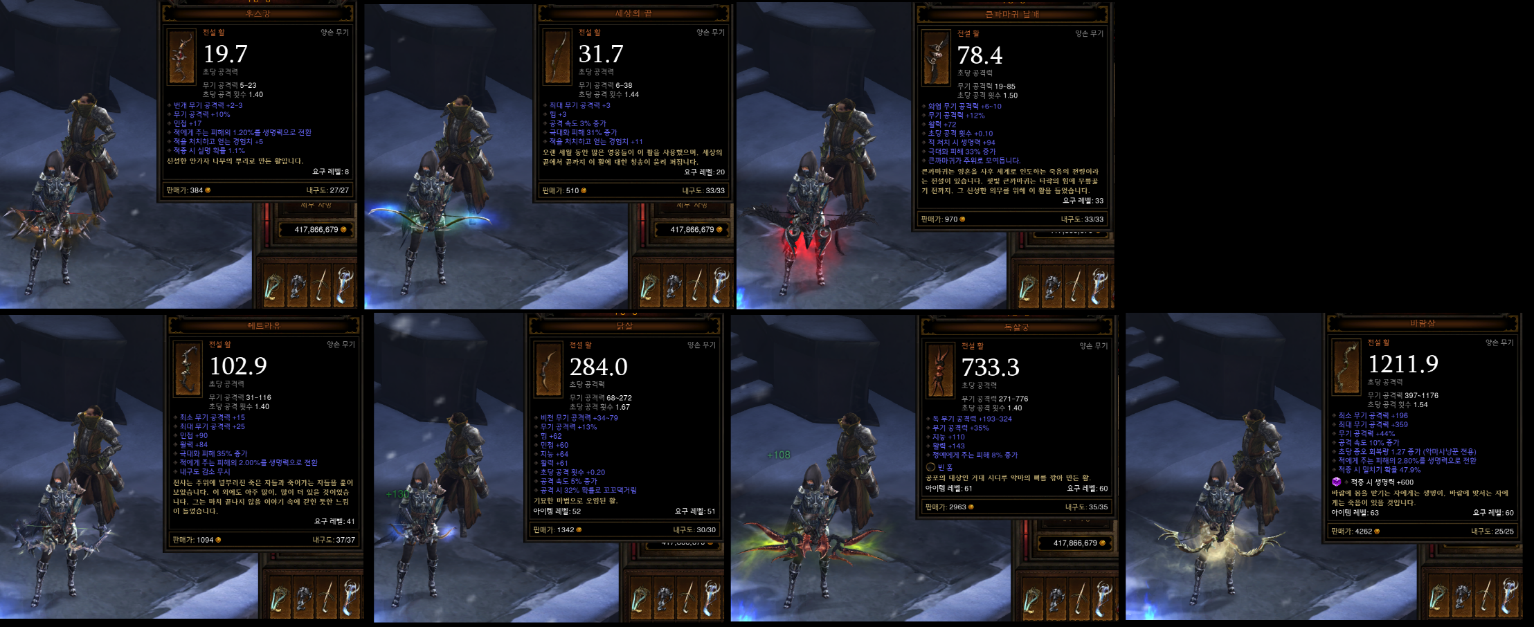 악사 전설 무기(손쇠뇌/양손쇠뇌/활) 룩 정리경매장 구경하다가 심심해서