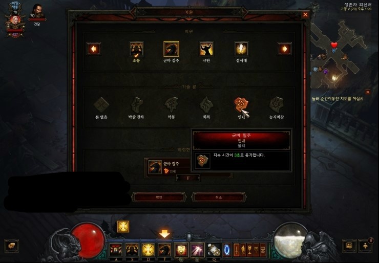 이게바로 군마 질주 라는 스킬인데요. 기본적으로 보큐런에서 룬은 인내를 사용합니다. 요기다가 패시브스킬인!