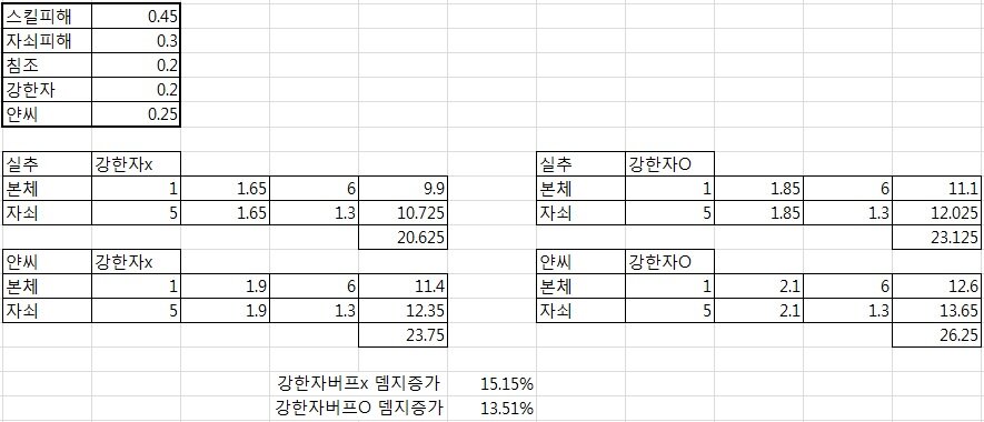 2. 솔플시 얀씨와의 딜적인 부분 스킬피해 25%증가가 실제로 작용하는 것은 13.51~15.15%입니다.